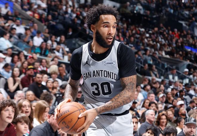 本場比賽中,馬刺的先發(fā)鋒線球員朱利安-尚帕尼(Julian Champagnie)的表現(xiàn)還是值得肯定的。尚帕尼全場出場31分14秒,投籃14中6,三分線外13中6,罰球4中4,得到了22分7籃板1助攻4搶斷1蓋帽的數(shù)據(jù),還有2次失誤,正負值為+13。尚帕尼在進攻端展現(xiàn)出了自己應有的外線投射能力,他命中了多記三分,而且到了比賽最后一節(jié),他還在不斷命中三分,幫助球隊穩(wěn)住了比賽的局面。尚帕尼不僅在進攻端起到了關鍵性的作用,他在防守端的表現(xiàn)同樣是可圈可點的,他也是證明了自己有著超強的個人防守能力。本場比賽中,尚帕尼的表現(xiàn)算得上是頂級3D類型鋒線球員了,他對于比賽的影響力實在是太強了,他的一系列出色表現(xiàn)也是球隊能夠取得勝利的關鍵因素。
